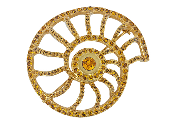 Fibula Gota a forma di aquila. Lamina d’oro e d’argento, cristallo di rocca e granati. Fine V sec. – VI sec. d.C. Roma, Musei Capitolini, da una sepoltura della via Flaminia. A questa splendida fibula (fibbia o spilla con cui si assicuravano le vesti) si ispirano i bijoux di questa collezione realizzati con l’antica tecnica degli smalti cloisonnè detti anche lustro di Bisanzio per cui gli smalti vengono stesi a mano in piccole celle (in francese cloisons) divise da sottili tramezzi metallici.