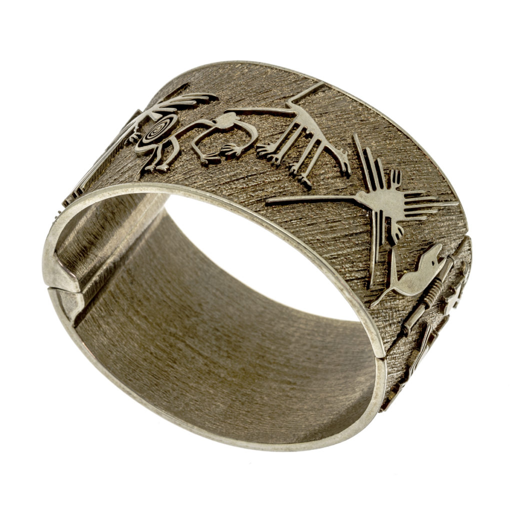 E’ l’anno 2000 e sto guardando un film di archeomovies….. fascino totale. Il viaggio nel tempo si concretizza oggi: Perù …il deserto…800 disegni perfettamente tracciati sul terreno e visibili solo dall’alto datati tra il 300 ed il 500 dopo Cristo. Potenza della mente umana, trionfo della geometria, evocazione degli dei, di ipotizzati interventi ultraterreni. Le 13.000 linee compongono una fantastica natura: colibrì, lucertole, ragni, scimmie, serpenti, umani o extraterrestri, cani e conchiglie, mani di uomo e serpenti di terra…. ancora un viaggio fantastico tra passato presente e futuro per chi indossa l’anello o il bracciale di questa collezione.