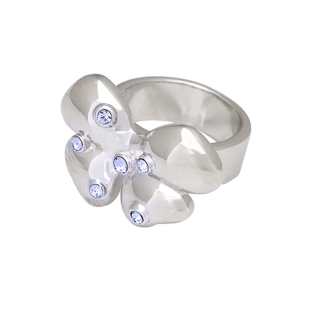 Anello in lega metallica finitura rodio, pietre Swarovski® light sapphire