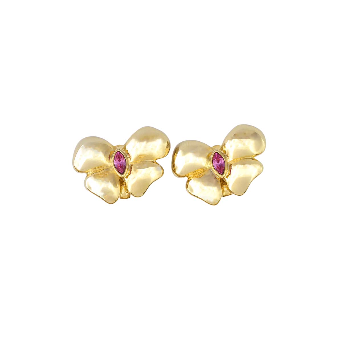 Orecchini in lega metallica finitura oro, pietra navette Swarovski® rose