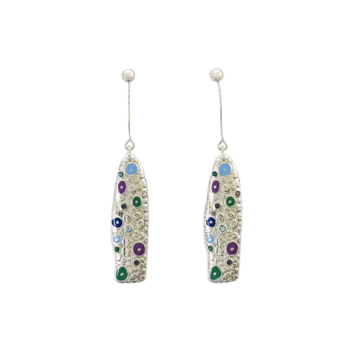 Orecchini pendenti in lega metallica, smalti cloisonné, pietre Swarovski® multicolor, foro