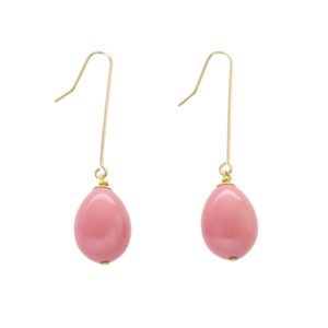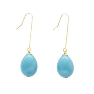 Trasfigurare l’antico e renderlo attuale è stato per me un sogno divenuto reale nella forma di questa goccia fusa di resina disegnata mille volte, realizzata infine in molte varianti di colore lucido o mat che diviene perla contemporanea al lobo di colei che voglia immaginare di essere modella di Tiziano. Muse che lo attorniarono negli atelier, rivali tra loro, rincorrendo il desiderio di immortalità e di poter essere ammirate da occhi lontani nel tempo, con o senza veli. Agli orecchini della modella del Ritratto di giovane donna con cappello piumato del dipinto dell’Ermitage di San Pietroburgo o alla Fanciulla con pelliccia del Kunsthistorisches Museum di Vienna, alla Danae di Capodimonte in Napoli o alla Venere di Urbino degli Uffizi si ispirano le gocce di resina pendenti e oscillanti dalle monachelle in argento rodiato o dorato. Infinita tavolozza di colori possibili: per questa selezione turchese, rosa, rosso lucido e nero mat.